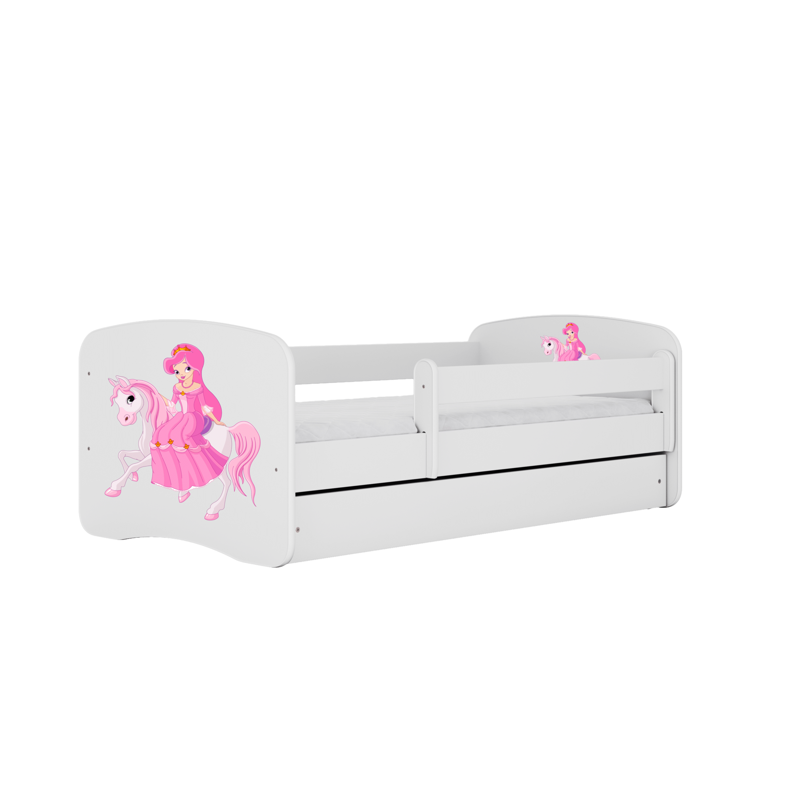 Babydreams juniorseng med prinsesse på hest, m. madras, sengehest og skuffe – hvid laminat (140×70)